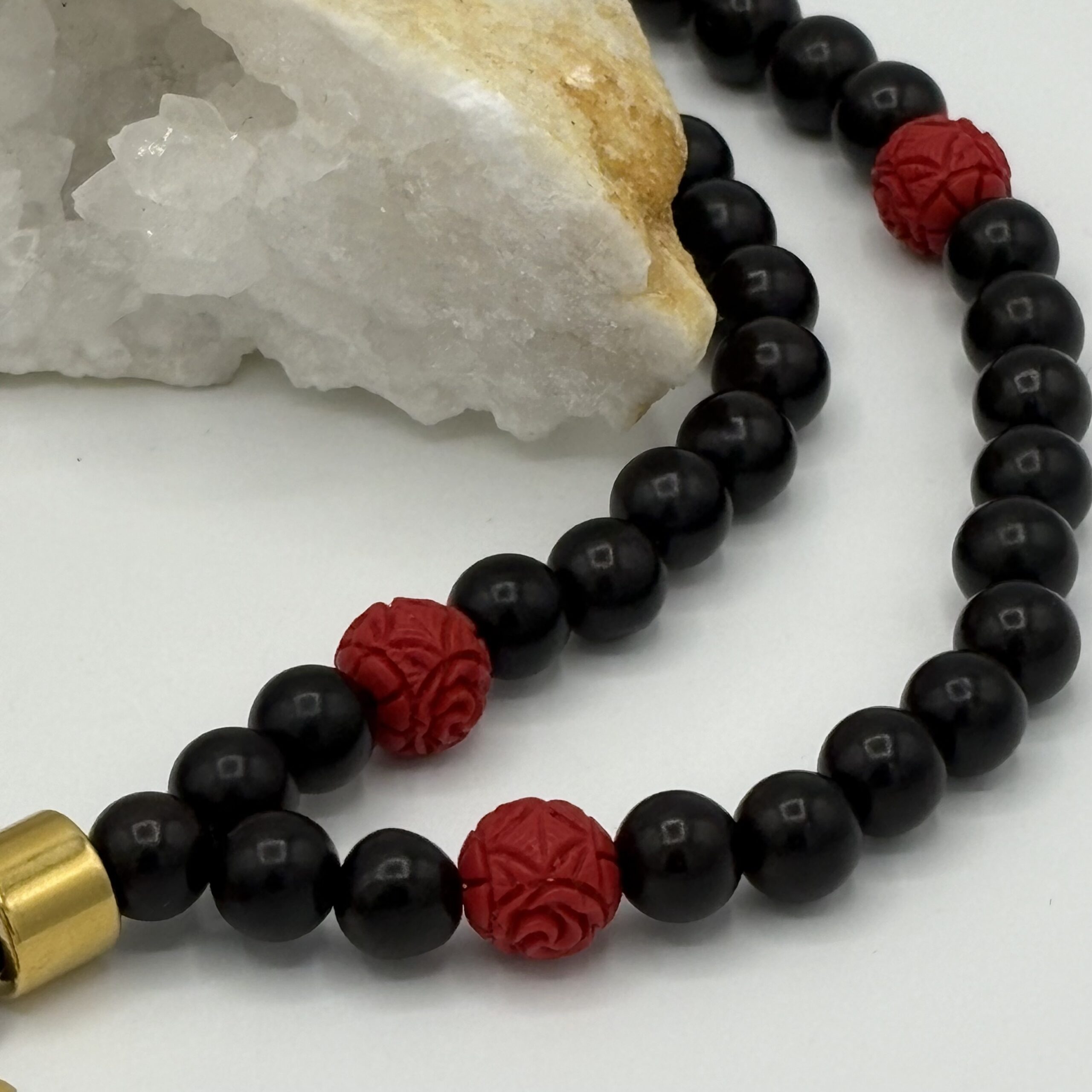 Mala Bois d’ébène & Cinabres – Collier de méditation – Lithothérapie